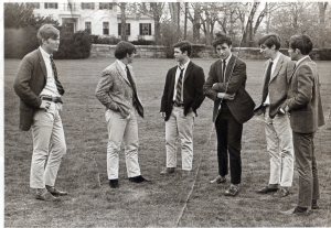 The Rising Storm, 1967, practice session at Phillips Academy. From left: Todd Cohen, Tom Scheft (rear), Charlie Rockwell (seated), Tony Thompson, Richard Weinberg, Bob Cohan