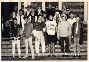 BBA Jug Band, January 1965. Front row, from left: Tom Scheft, Bob Cohan, Tony Thompson. Second row: Todd Cohen (2nd from left), Richard Weinberg (2nd from right). Top row: Charlie Rockwell (right)